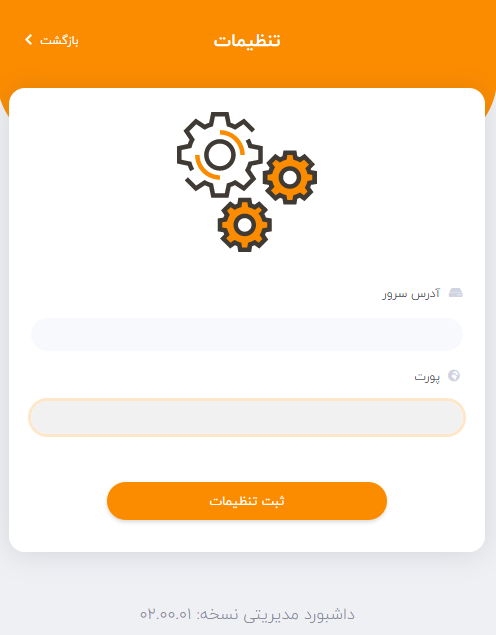 توجه: برای استفاده از این امکان می بایستی از ارائه دهنده خدمات اینترنت خود IP Static خریداری نمایید و تنظیمات Port Forwarding را بر روی مودم خود انجام دهید. (جهت اتصال به سرور بایستی در صفحه تنظیمات، در باکس آدرس سرور، IP Static مجموعه و در پورت بایستی شماره پورت تنظیم شده در تنظیمات مودم که در قسمت Port Forwarding تعیین شده است را درج نمایید)