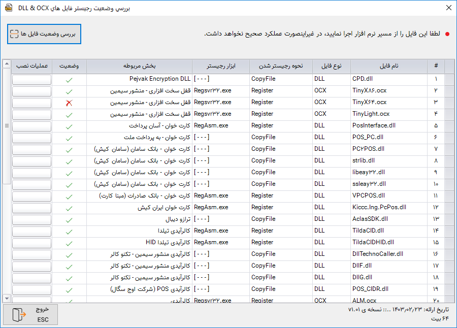 با استفاده از این نرم افزار می توانید وضعیت رجیستر همه فایل های DLL و OCX را بررسی نمایید