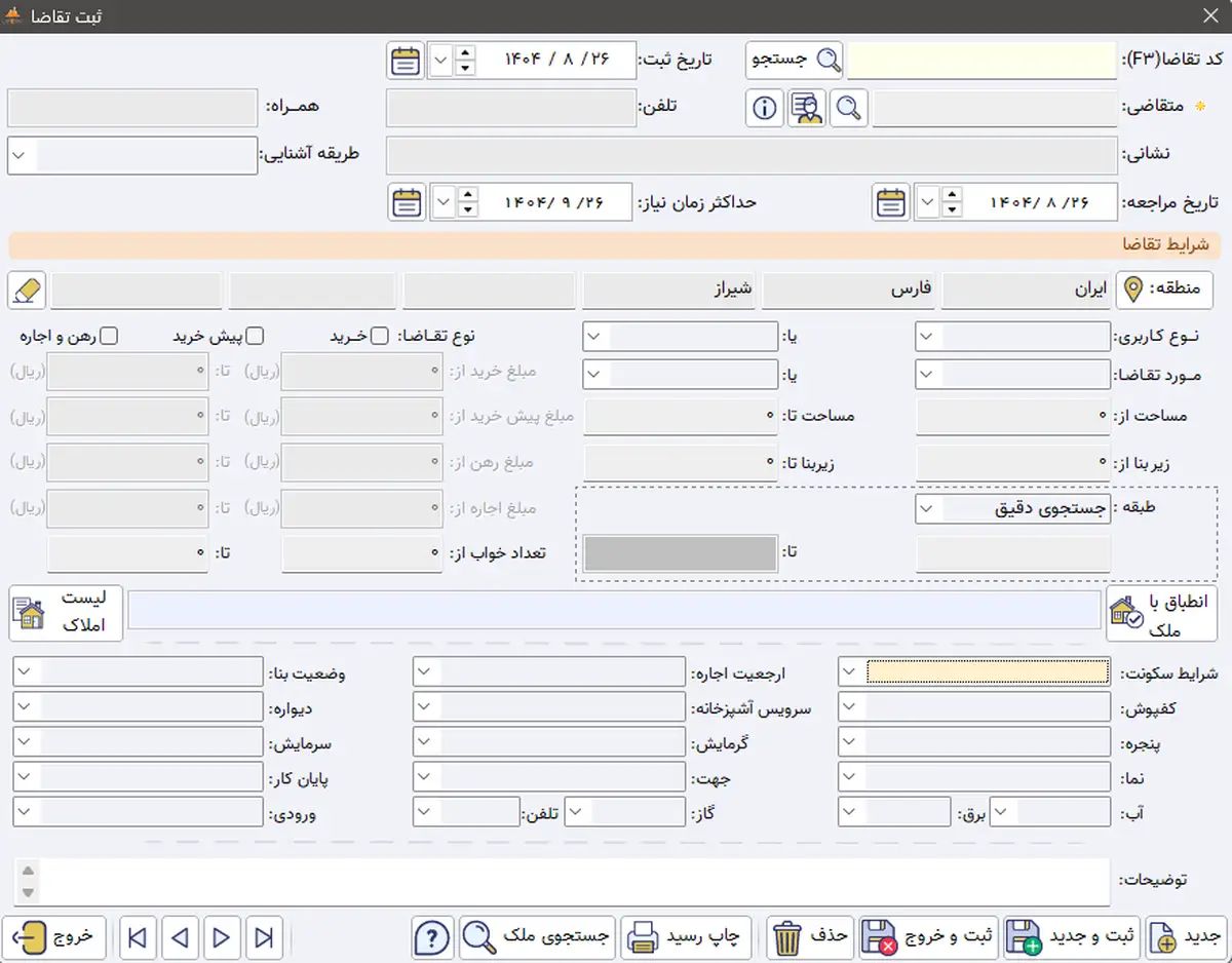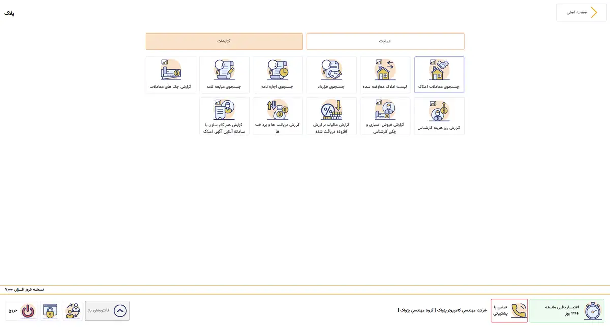 نرمافزار حسابداری املاک سیستمی یکپارچه برای آژانسهای املاک است که ثبت و جستوجوی فایلها (رهن، اجاره، فروش، تهاتر، مشارکت)، چاپ خودکار مبایعهنامه و اجارهنامه، مدیریت مشتری، محاسبه خودکار کمیسیون، مدیریت بانک/چک و گزارشهای مالی را در یک پنل سریع و امن ارائه میکند.