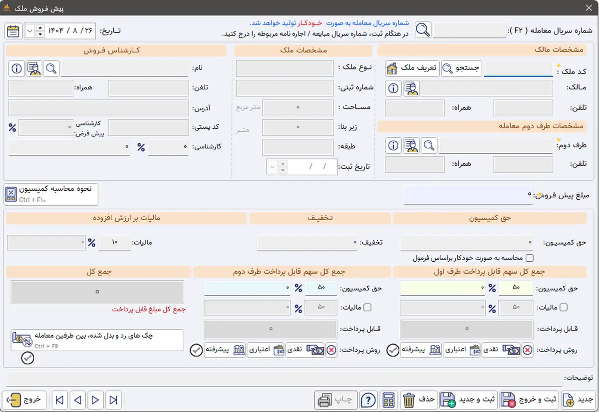سهم کمیسیون طرفین معامله رو میشه با این نرم افزار محاسبه کرد؟ و از هر طرف معامله درصد مشخصی رو دریافت کنیم؟ از طریق کارتخوان میتونیم این مبالغ رو از طرفین دریافت کنیم (مبلغ رو خودکار بفرسته روی کارتخوان)؟