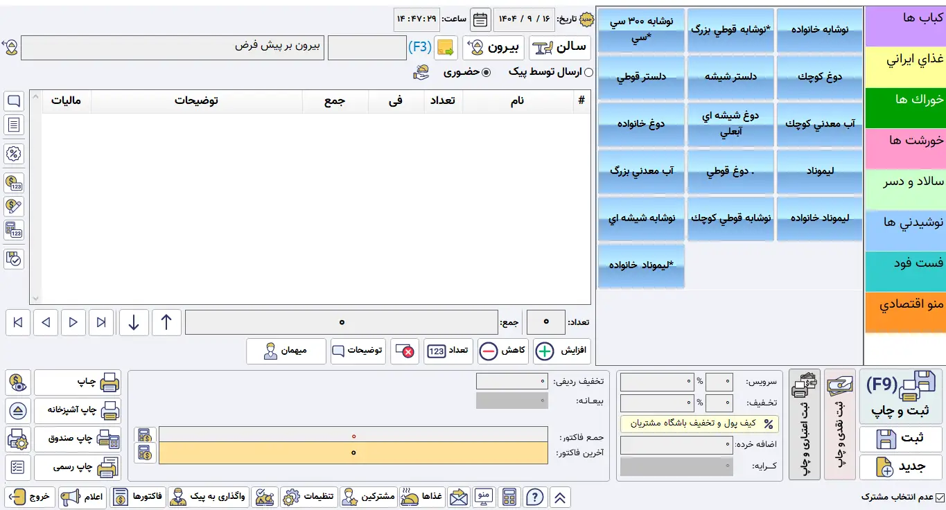- ادغام کامل با دستگاه های کارتخوان، ترازوی فروش وزنی و تبلت سفارش گیر گارسون