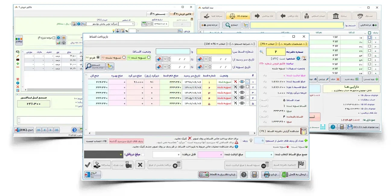 - امکان فروش اقساطی ، صدور دفترچه قسط و محاسبه بهره اقساط با فرمول های متعدد بر اساس سلیقه کاربر