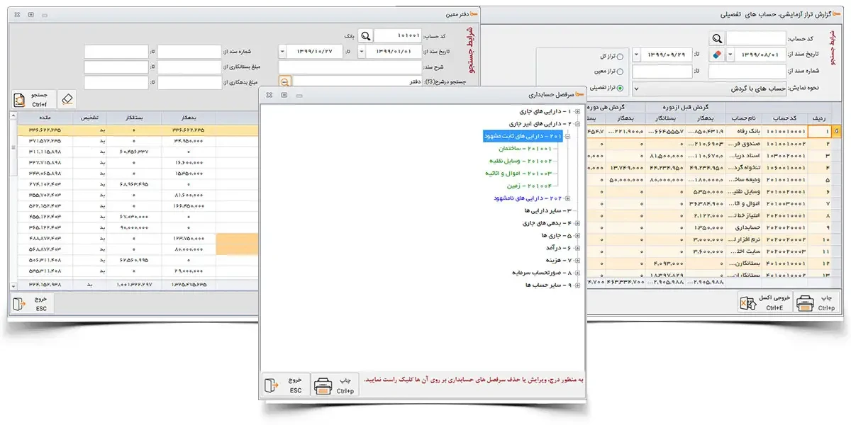 نرم افزار حسابداری سحا (سامانه حسابداری اصناف)، تمام قابلیت های یک نرم افزار حسابداری کامل را دارد، قابلیت هایی که به راحتی حسابداری یک مجموعه را به صورت کامل و بسیار روان در اختیار شما قرار می دهد. قابلیت های همچون تعریف سرفصل های حسابداری در سه سطح کل، معین و تفصیلی بدون محدودیت، گزارش دفاتر کل، معین و تفصیلی – گزارش تراز آزمایشی در هر سه سطح کل، معین و تفصیلی – گزارش سود و زیان سال مالی – ثبت اسناد دریافتی، پرداختی – مدیریت بانک و .. می باشد که با جزئیات کامل طراحی و پیاده سازی شده است.