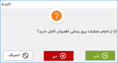 - با فشردن کلید شروع پیغام زیر را مشاهده می نمایید و در صورت تایید پیغام، عملیات بروز رسانی آغاز می گردد.